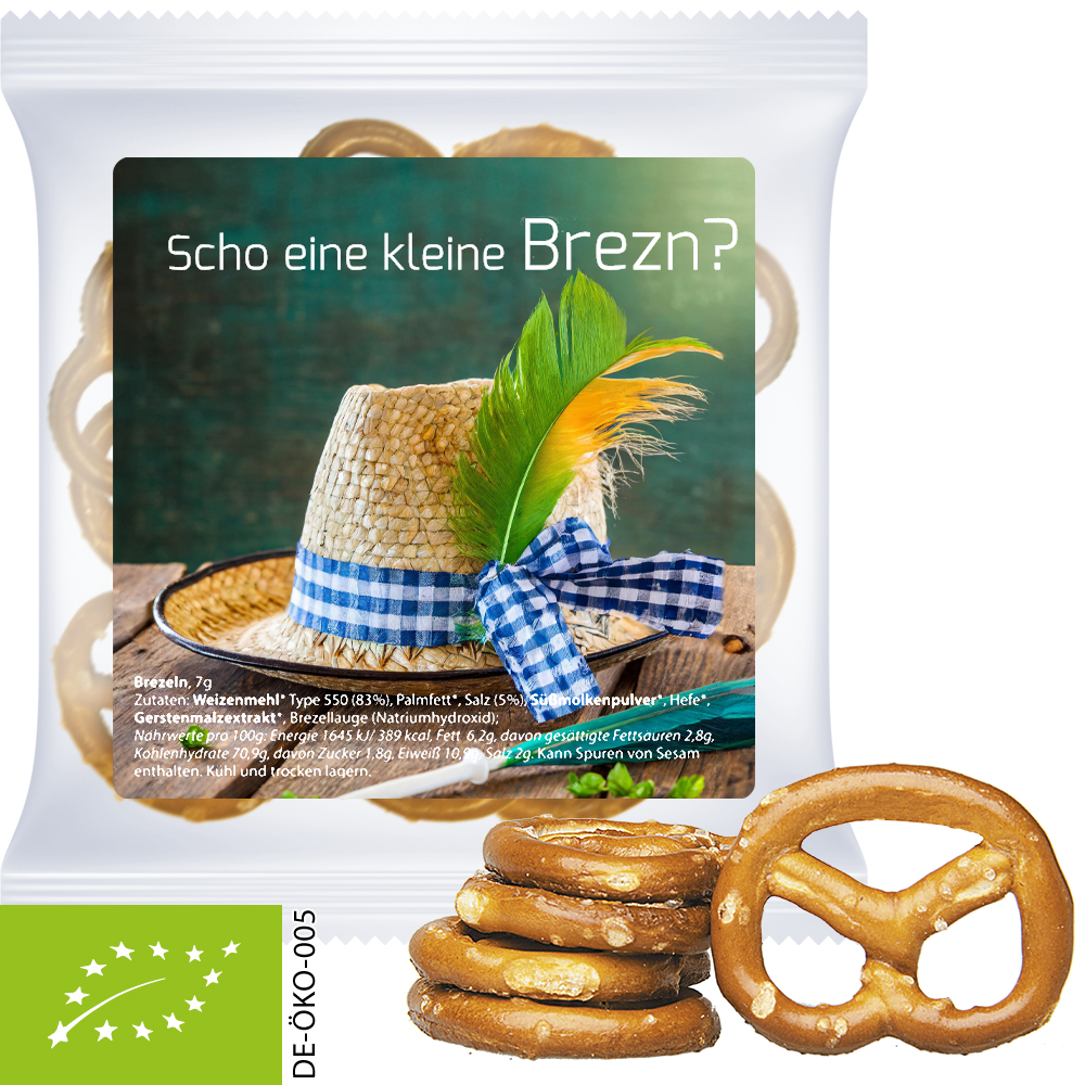 Mit den Mini Brezeln Original bieten Sie Ihren Kunden und Gästen einen echten Genuss. Das klassische Salzgebäck vereint knackige Frische und den typischen Salzgeschmack, der zu jedem Anlass passt. Ob als Snack im Büro, auf Messen oder bei Veranstaltungen – diese Mini Brezeln sind die perfekte Wahl für Ihre Werbeaktionen. Verpackt als praktisches Giveaway sorgen die Mini Brezeln Original für bleibenden Eindruck und bringen Ihre Marke auf eine sympathische und schmackhafte Weise ins Gespräch. Ideal für die Kommunikation mit Kunden und Partnern, die den einfachen, aber köstlichen Snack zu schätzen wissen. Setzen Sie auf den Klassiker und machen Sie Ihre Werbung mit den Mini Brezeln Original zu einem wahren Erfolg!