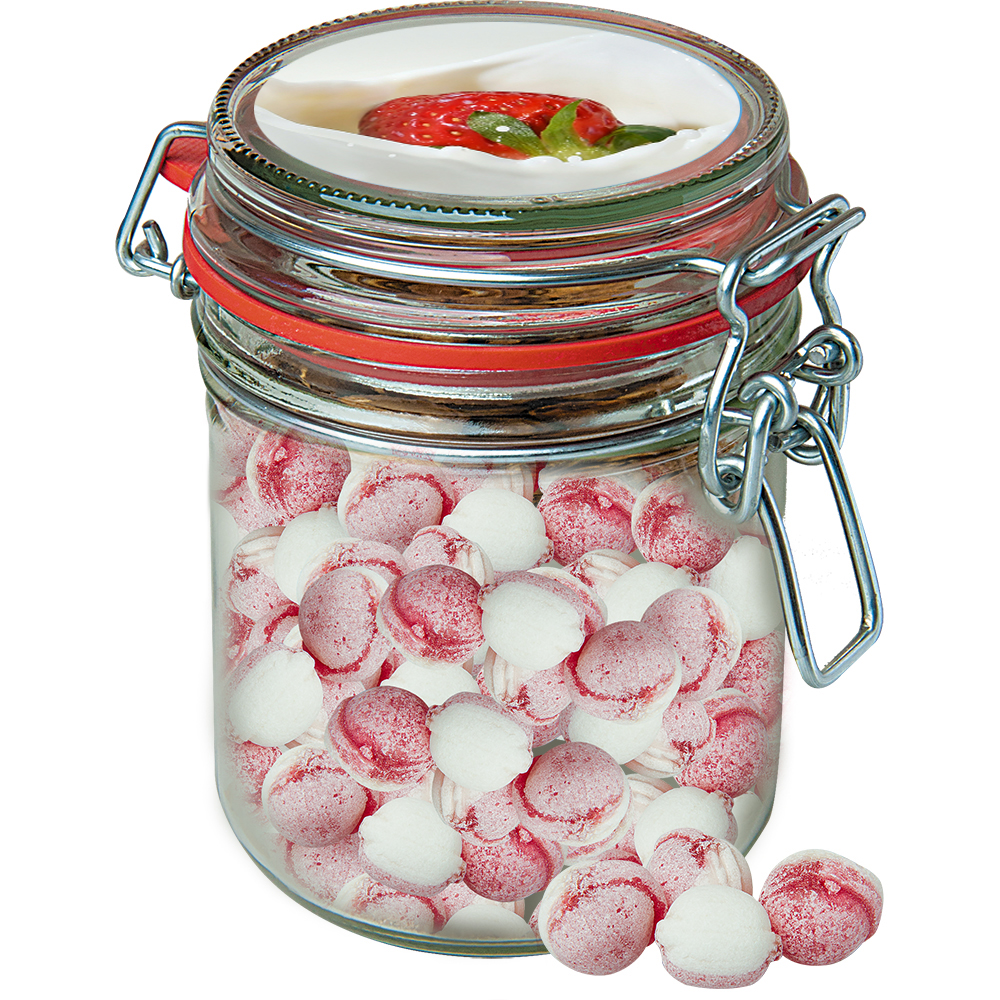 Bonbonglas Maxi aus Glas. Werbeanbringung als Etikett in 4c individuell bedruckbar.