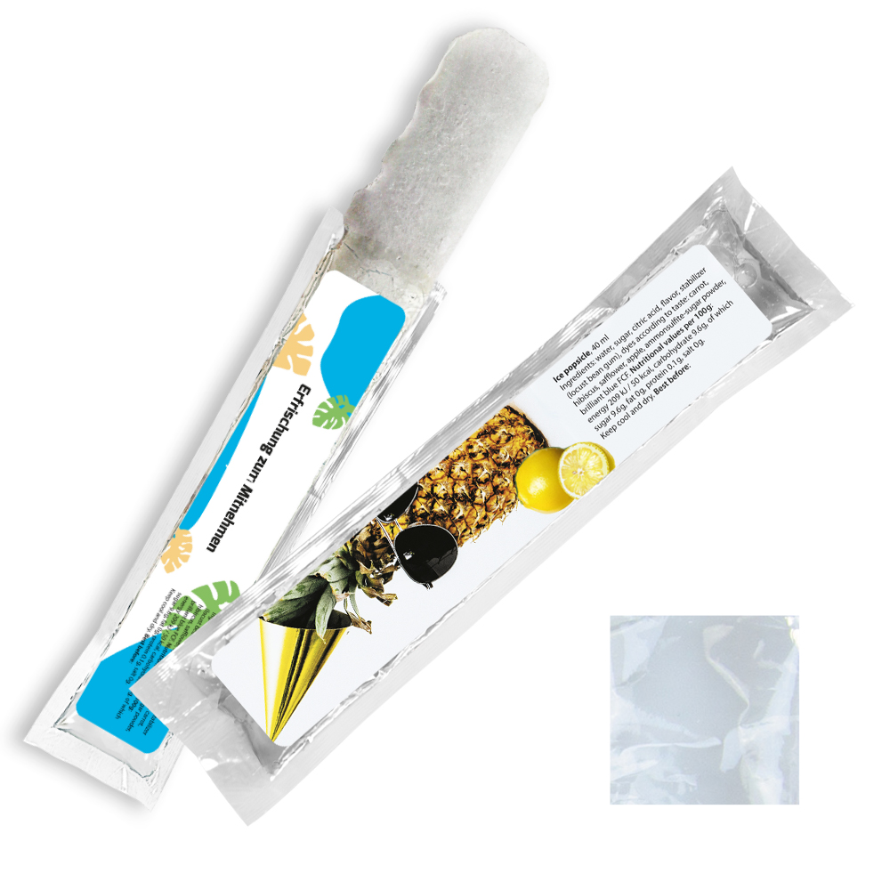 Frische Werbung, die auf der Zunge prickelt! Das Wassereis in der spritzigen Geschmacksrichtung Zitrone sorgt für eine eisige Erfrischung an heißen Tagen. Das ideale Giveaway für Sommer-Events, Festivals und Sportveranstaltungen.