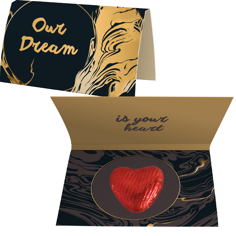 Schoko-Herzen, ca. 5g, Werbekarte A6 gefaltet