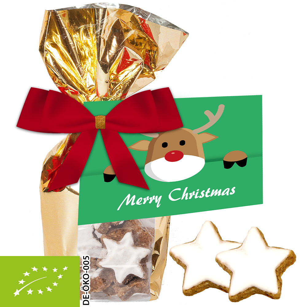 Bio Zimtsterne, ca. 100g, Goldfolienbeutel mit Werbekarte