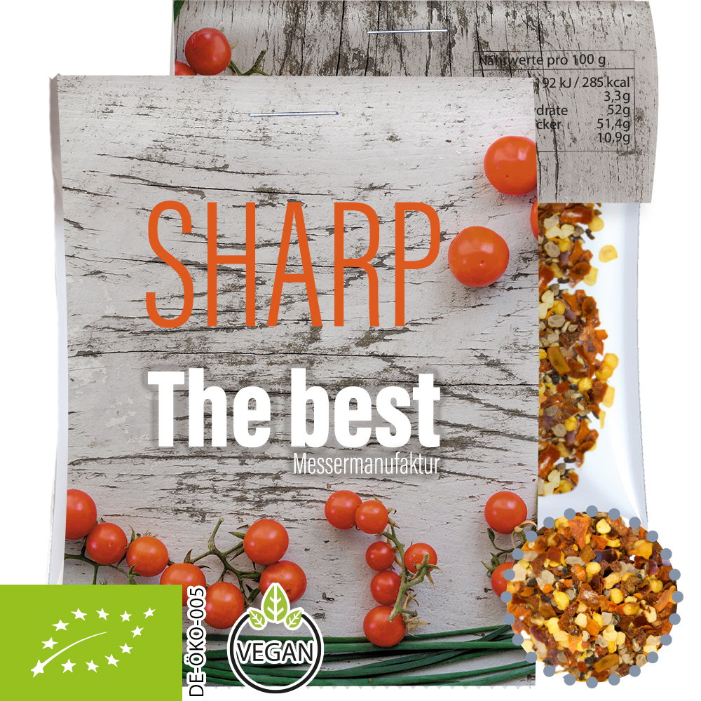 Für alle, die es richtig würzig und feurig mögen: Unsere Gewürzmischung Feuer und Flamme bietet die perfekte Kombination aus scharfen und pikanten Aromen. Diese Gewürzmischung aus biologischem Anbau verleiht Ihren Gerichten eine intensive, aber harmonische Schärfe – ideal für Grillabende, Eintöpfe oder exotische Gerichte. Auch als Giveaway ein absoluter Hit, das Ihre Kunden garantiert in Erinnerung behalten wird.
