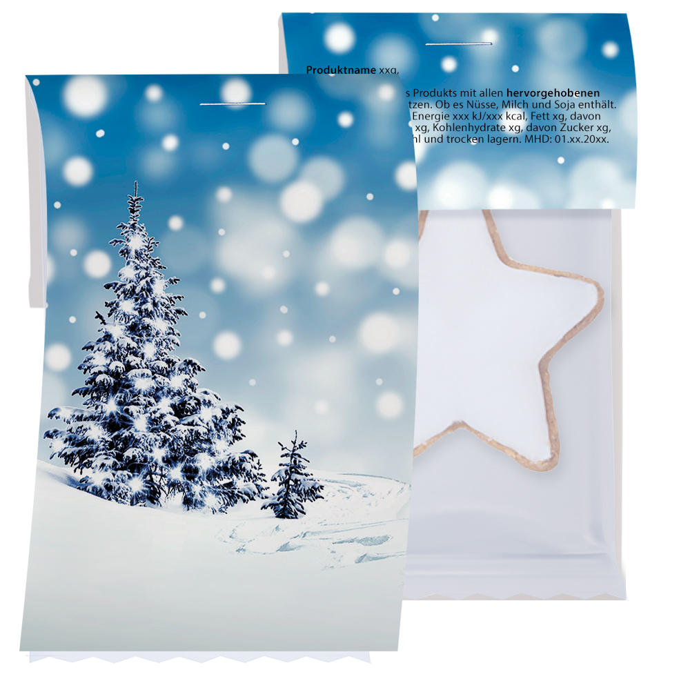 Verleihen Sie Ihrer Werbung einen festlichen Glanz mit unseren Zimtsternen! Das klassische Gebäck, umhüllt von einer zarten Eiweißglasur, sorgt für wohlige Wärme und weihnachtliche Stimmung. Mit ihrem feinen Zimtgeschmack sind sie der perfekte Begleiter für gemütliche Momente und machen sich hervorragend als Giveaway für Ihre Kunden. Teilen Sie den Genuss und lassen Sie Ihre Marke auf süße Weise in Erinnerung bleiben. Ideal für alle, die den Winter mit einer Prise Festlichkeit und einem Hauch von Tradition würzen möchten. Mit diesen Zimtsternen ist Freude garantiert – und das Teilen umso schöner.