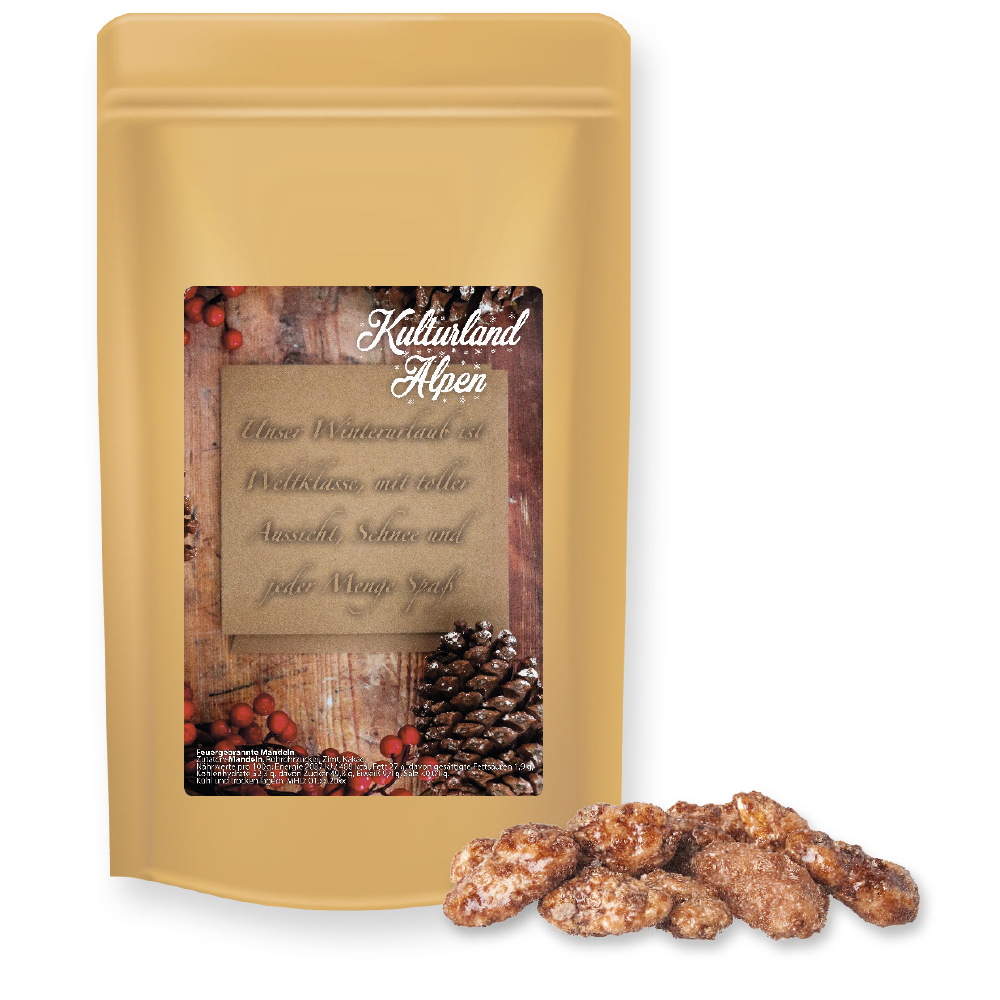 Mit unseren Feuergebrannten Mandeln bringen Sie den Geschmack des Jahrmarkts direkt zu Ihren Kunden! Die knackigen Mandeln sind perfekt karamellisiert und in einer köstlichen Zimt-Zucker-Mischung gewälzt – für einen unverwechselbar süßen Genuss. Der süße Klassiker, das auf keiner weihnachtlichen Veranstaltung fehlen sollte! Ob als süße Aufmerksamkeit bei Messen, Firmenevents oder als kleines Präsent für Ihre Kunden – diese Feuergebrannten Mandeln lassen die Herzen Ihrer Kollegen, Mitarbeiter und Kunden höherschlagen und sorgen für süße Momente der Freude.