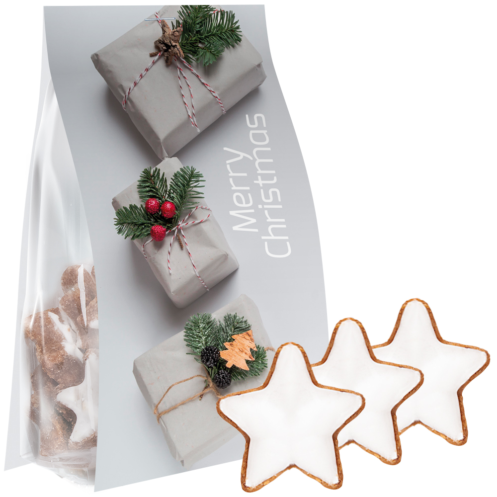 Zimtsterne, 100g, Express Blockbodenbeutel mit Werbereiter