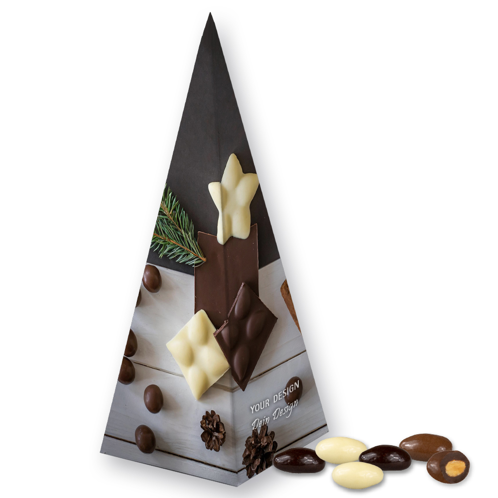 Mandel-Schoko-Trio, ca. 30g, Präsent-Pyramide
