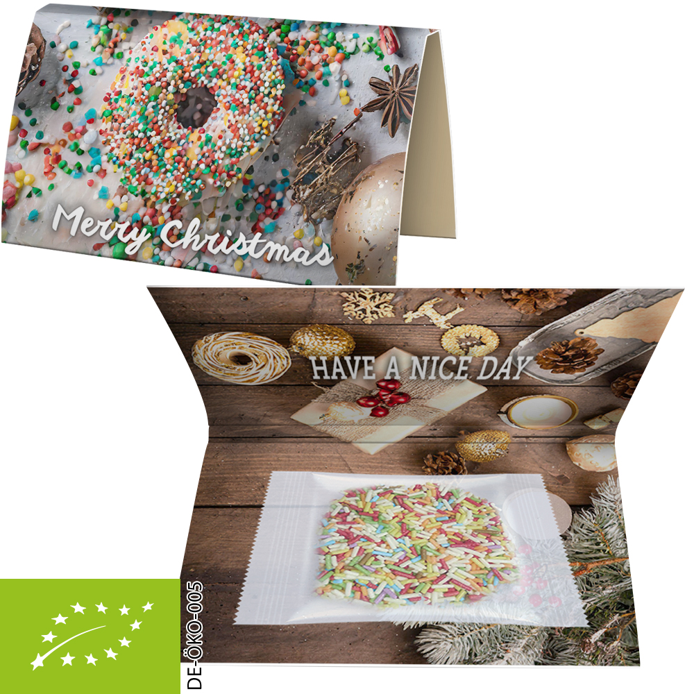 Bio Zucker-Streusel, ca. 15g, Werbekarte A6 gefaltet