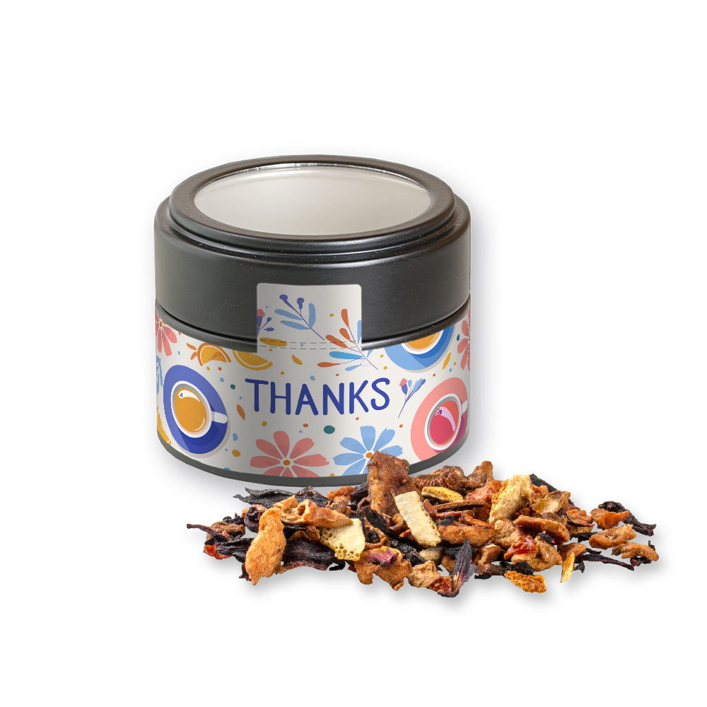 | Technische Infos | Werbefläche: 197 x 22 mm, Werbeanbringung als Etikett in 4c individuell bedruckbar. Verpackung: Metalldose Mini mit Sichtfenster schwarz Format: 63x50x63 mm VPE: 58 Zolltarifnummer: 21012092 Ursprungsland: Deutschland |
