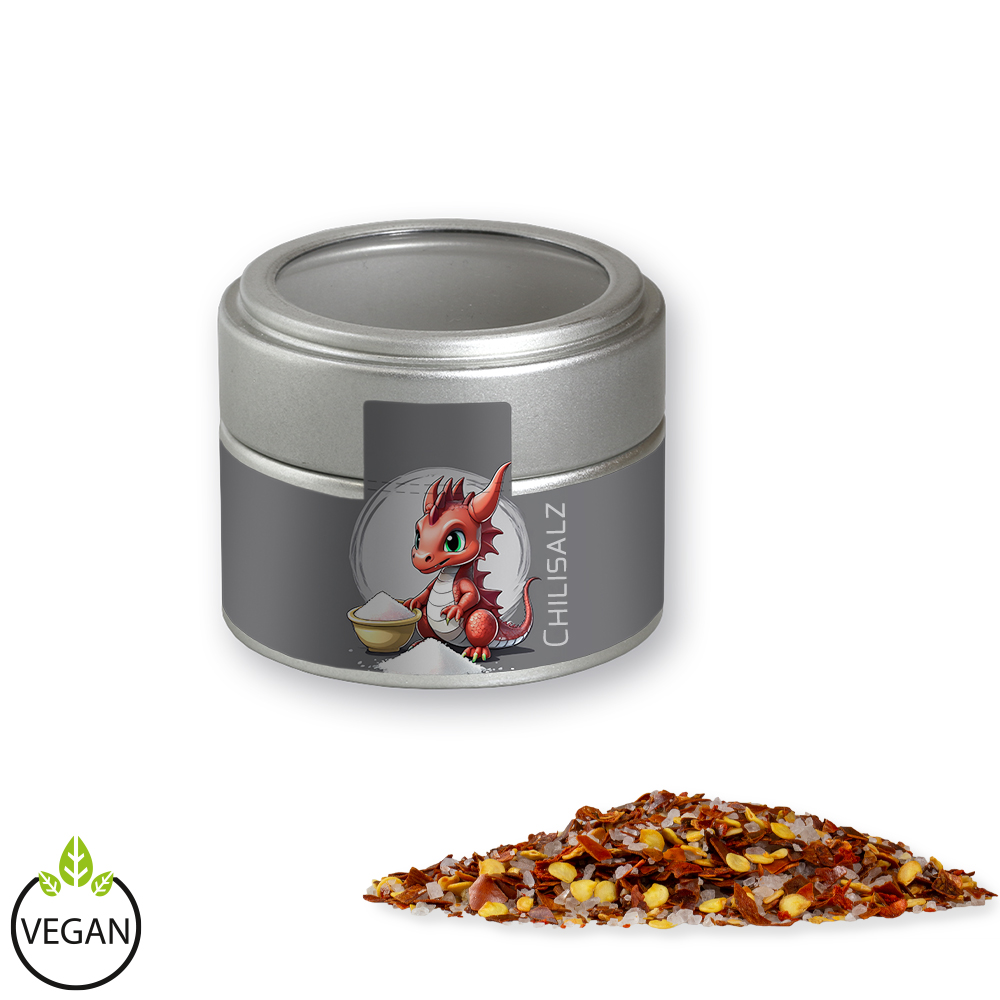 Gewürzmischung Chili-Salz, ca. 45g, Metalldose Mini mit Sichtfenster silber