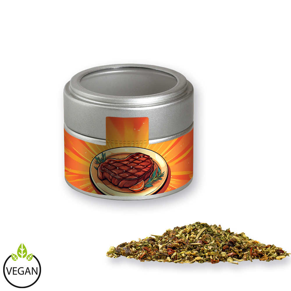 Gewürzmischung Steakgewürz, ca. 60g, Metalldose Mini mit Sichtfenster silber