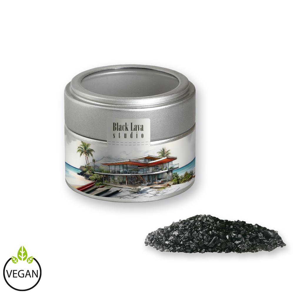 Gewürzmischung Black Lava Salz, ca. 110g, Metalldose Mini mit Sichtfenster silber