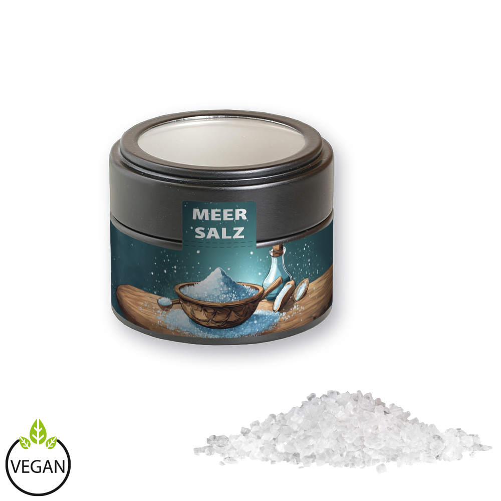 Naturbelassen und grobkörnig – dieses Meersalz bringt die pure Würze des Meeres in Ihre Küche. Perfekt zum Kochen, Marinieren oder zum Nachwürzen direkt am Tisch. Ein vielseitiges Gewürz für alle, die auf natürliche Aromen setzen. Ideal als Giveaway für Feinschmecker!