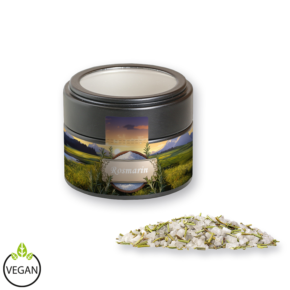 Gewürzmischung Rosmarin-Salz, ca. 75g, Metalldose Mini mit Sichtfenster schwarz