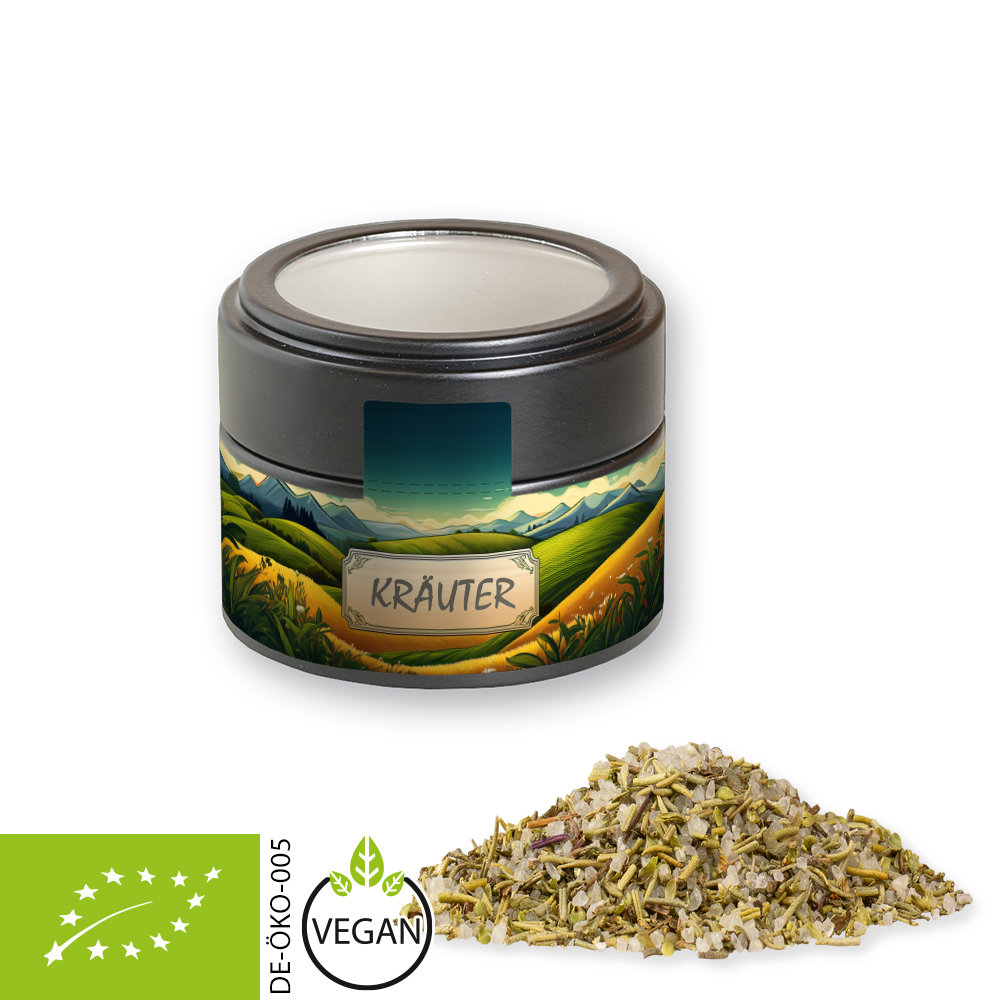 Bio Gewürzmischung Kräutersalz, ca. 75g, Metalldose Mini mit Sichtfenster schwarz