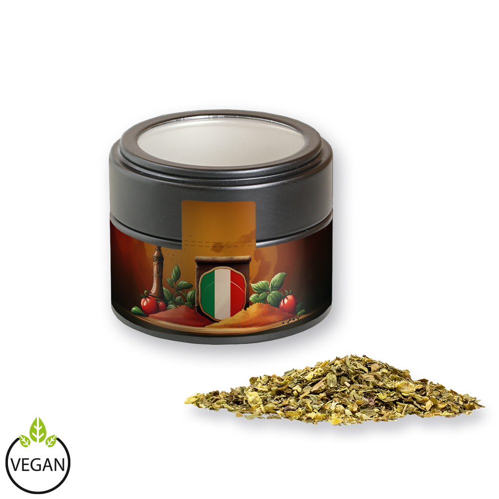 Gewürzmischung Pizza-Kräuter, ca. 16g, Metalldose Mini mit Sichtfenster schwarz