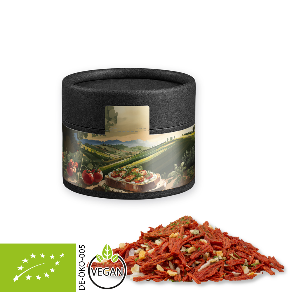 Bio Gewürzmischung Toskanische Bruchetta, ca. 28g, Kraftpapierdose Mini schwarz