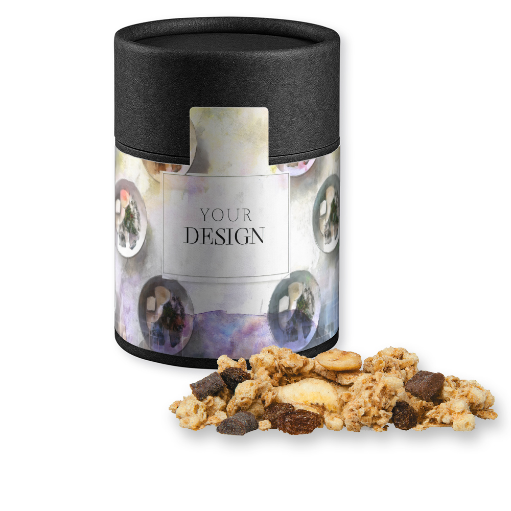 Müsli Knusper Banane-Schoko, ca. 70g, Kraftpapierdose Midi schwarz
